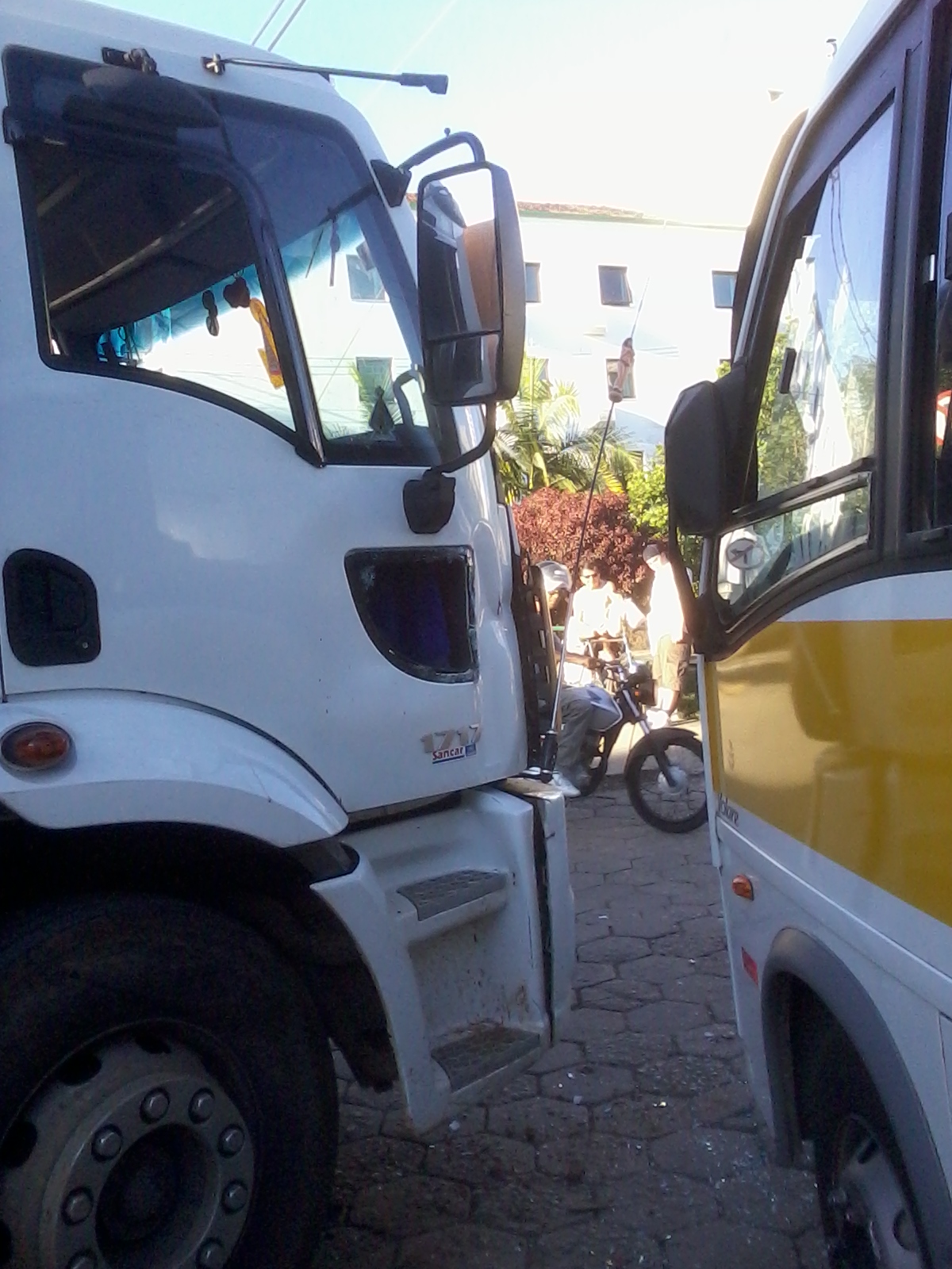 Uma van Escolar foi atingida por um caminhão carregado de rações no fim da tarde desta última Quarta feira (21/11) . O acidente aconteceu na esquina das rua Saturnino da Veiga com Comendador costa, no centro de São Lourenço.