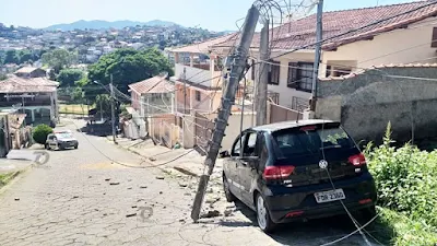 Um carro sem tripulantes acabou descendo uma ladeira desgovernado e batendo violentamente contra um poste na manhã desta quarta-feira (02/10) no bairro Santa Mônica, cidade de São Lourenço, causando susto aos moradores e mobilizando equipes do Corpo de Bombeiros, Polícia Militar e Sl Trans.